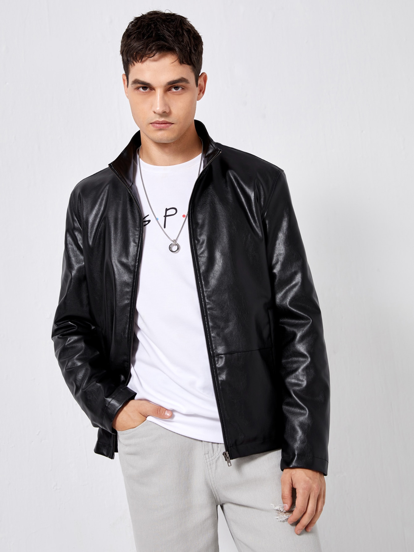 Men Zipper Pu Leather Jacket Xl 12 Black Casual F035d Walmart Com